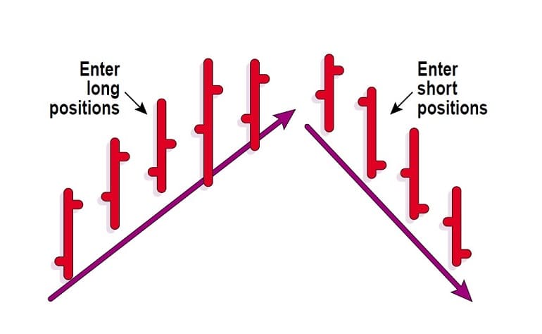 - Enter long positions if the trend is up and price is turning in an upward direction from the pivot.