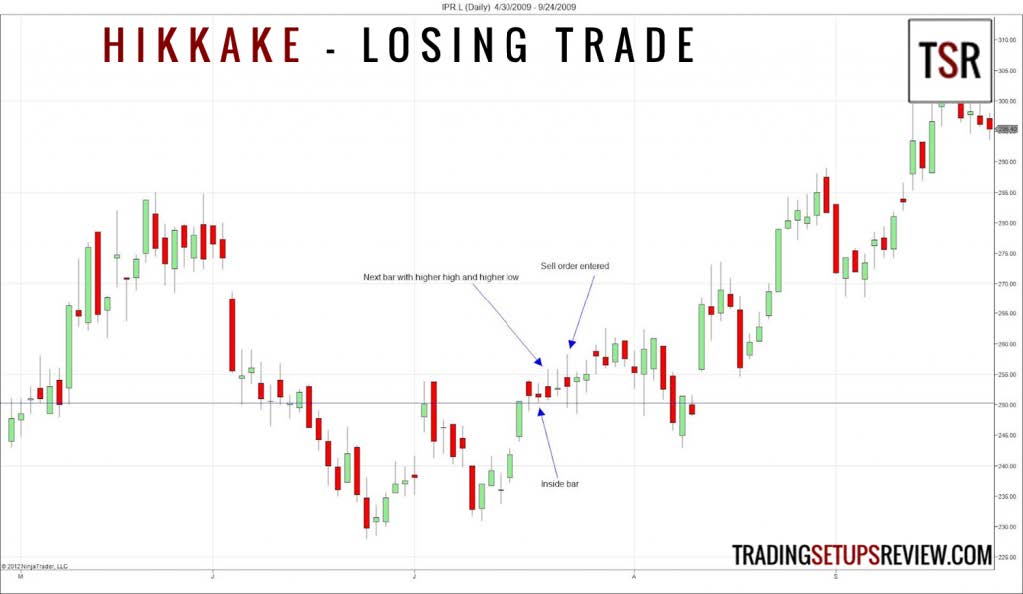 - A buy order was placed above the high of the inside bar, but was quickly stopped out.