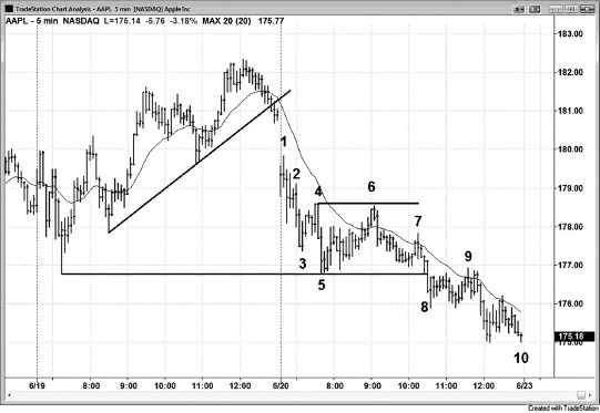 This down-to-earth approach, rooted in flexibility and realism, is what gives his method its strength—and makes it accessible to any trader willing to learn the language of price. Figure P.1 – AAPL, Daily Chart through June 10, 2008 (This chart, with added trendlines, also appears in the book’s final chapter along with detailed trade.