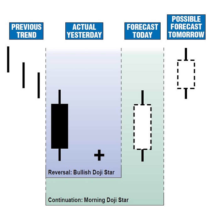 - FIGURE 3: DOJI PATTERN. A doji, which is a candle with little or no body, indicates that if there is a trend it is likely to change. Shown is the bullish version.
